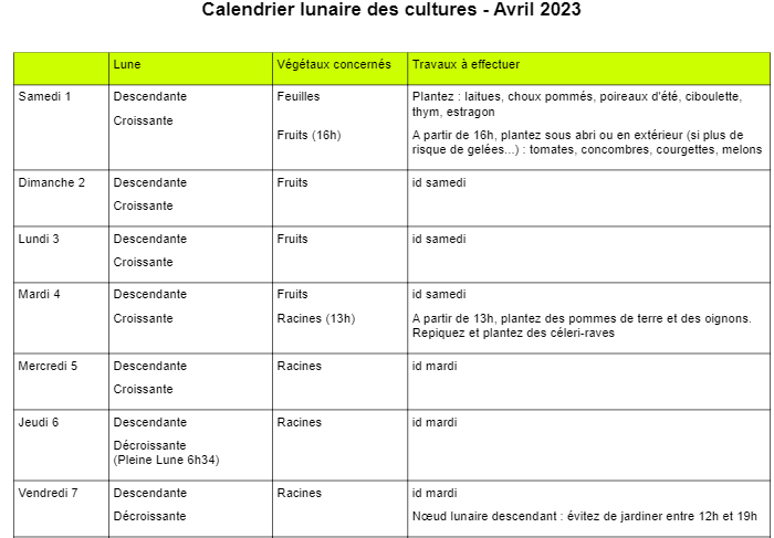 Calendrier Lunaire pour Jardiner: voici celui d’Avril 2023