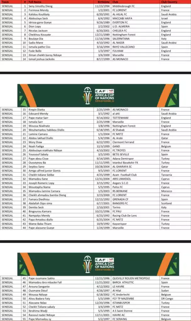 Un groupe de 55 joueurs a été convoqué par le sélectionneur du Sénégal, Aliou Cissé, en vue de la CAN Côte d’ivoire 2023. Plusieurs nouveaux joueurs font partie de la liste.