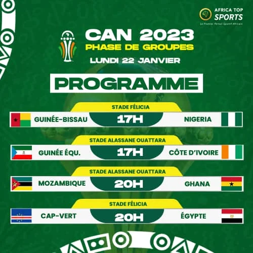 CAN 2023: le Ghana et la Côte d’Ivoire en danger, le programme de ce lundi 22 janvier