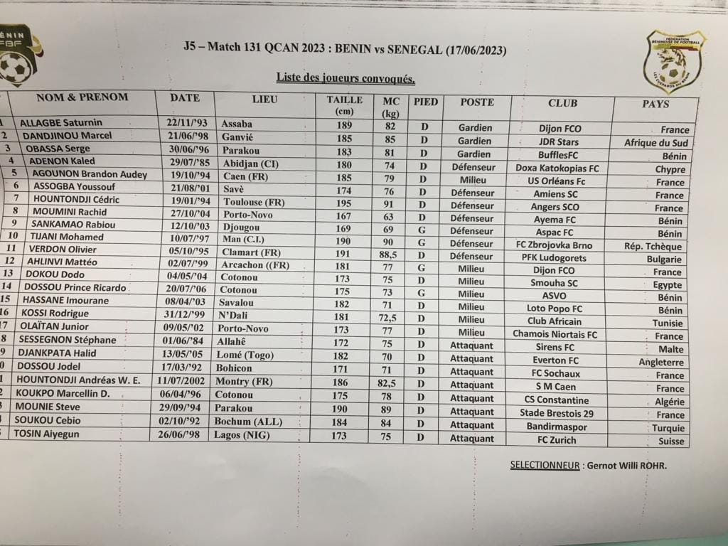 Un gros défi pour le sélectionneur national Gernot Rorh, sans doute son tout premier sur le banc de l’équipe nationale. Et pour atteindre cette mission dantesque, le technicien franco-allemand a fait appel à l’ensemble de ses meilleurs joueurs. Dans cette liste, on retrouve les éternels habitués dont Saturnin Allagbè, Cebio Soukou, Cédric Hountondji, Jodel Dossou ou encore Khaled Adenon. Convoqués pour la première fois lors du dernier rassemblement en Avril dernier, les jeunes pousses, brillants à la CAN U20 en Egypte, sont également retenus. A noter aussi la présence d’Andréas Hountondji, l’attaquant de l’Us Orléans en national en France, qui a récemment dit « oui » à l’équipe nationale.