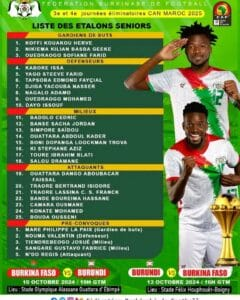 Pour ces deux rendez-vous, le sélectionneur Brama Traoré a dévoilé sa liste des joueurs convoqués. Absents depuis des mois, Bertrand Traoré et Issouf Dayo font leur retour dans le groupe. Les autres cadres de l’effectif, dont Cédric Badolo, Sacha Bansé, Edmond Tapsoba, Nasser Djiga ou encore Issa Kaboré sont aussi présents.