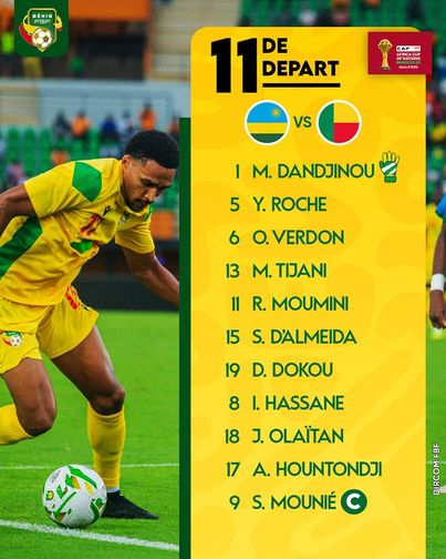 CAN 2025 (Q): Cédric Hountondji sur le banc, les 11 entrants de Rwanda-Bénin
