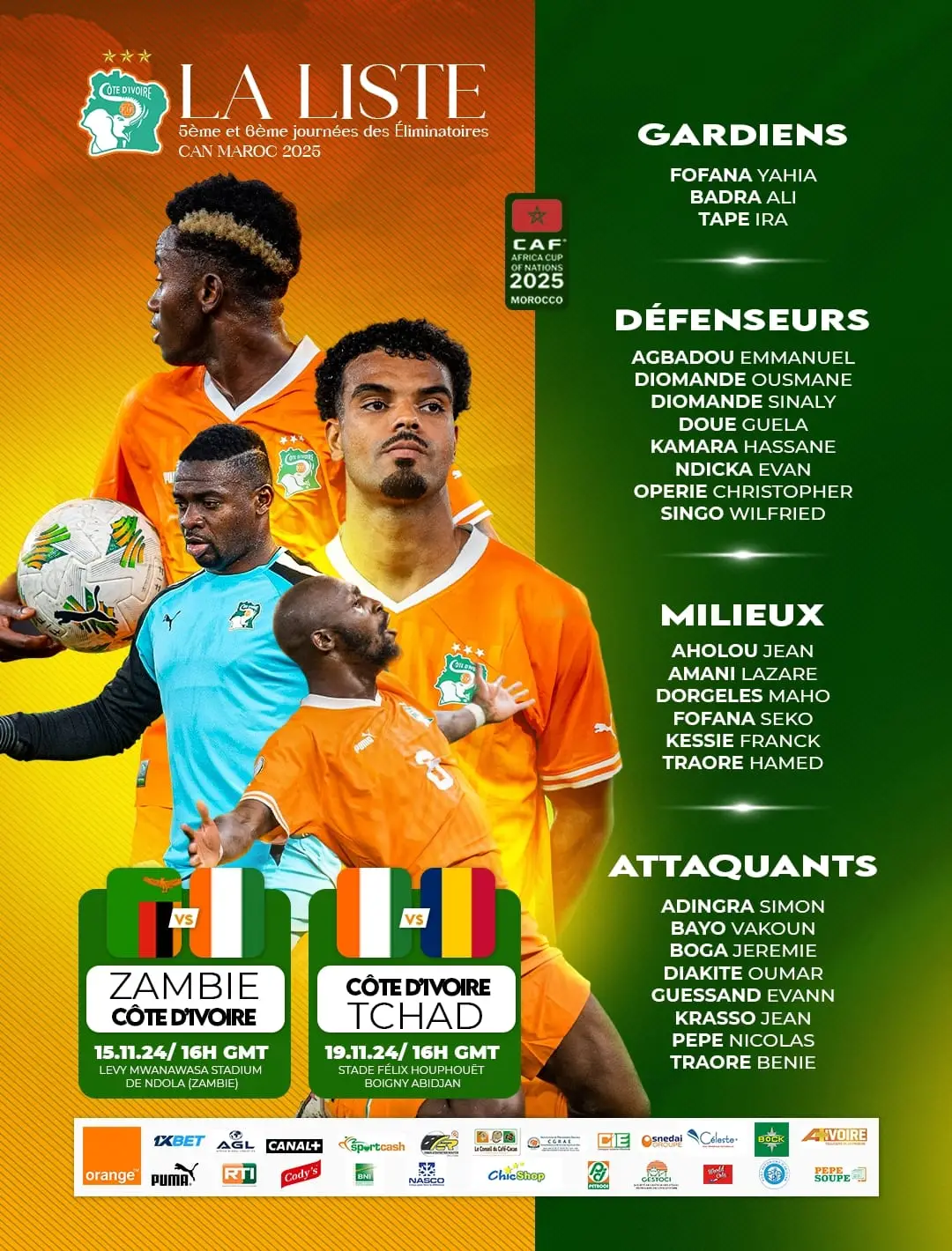 CAN 2025 (Q): la liste de la Côte d’Ivoire pour les deux dernières journées