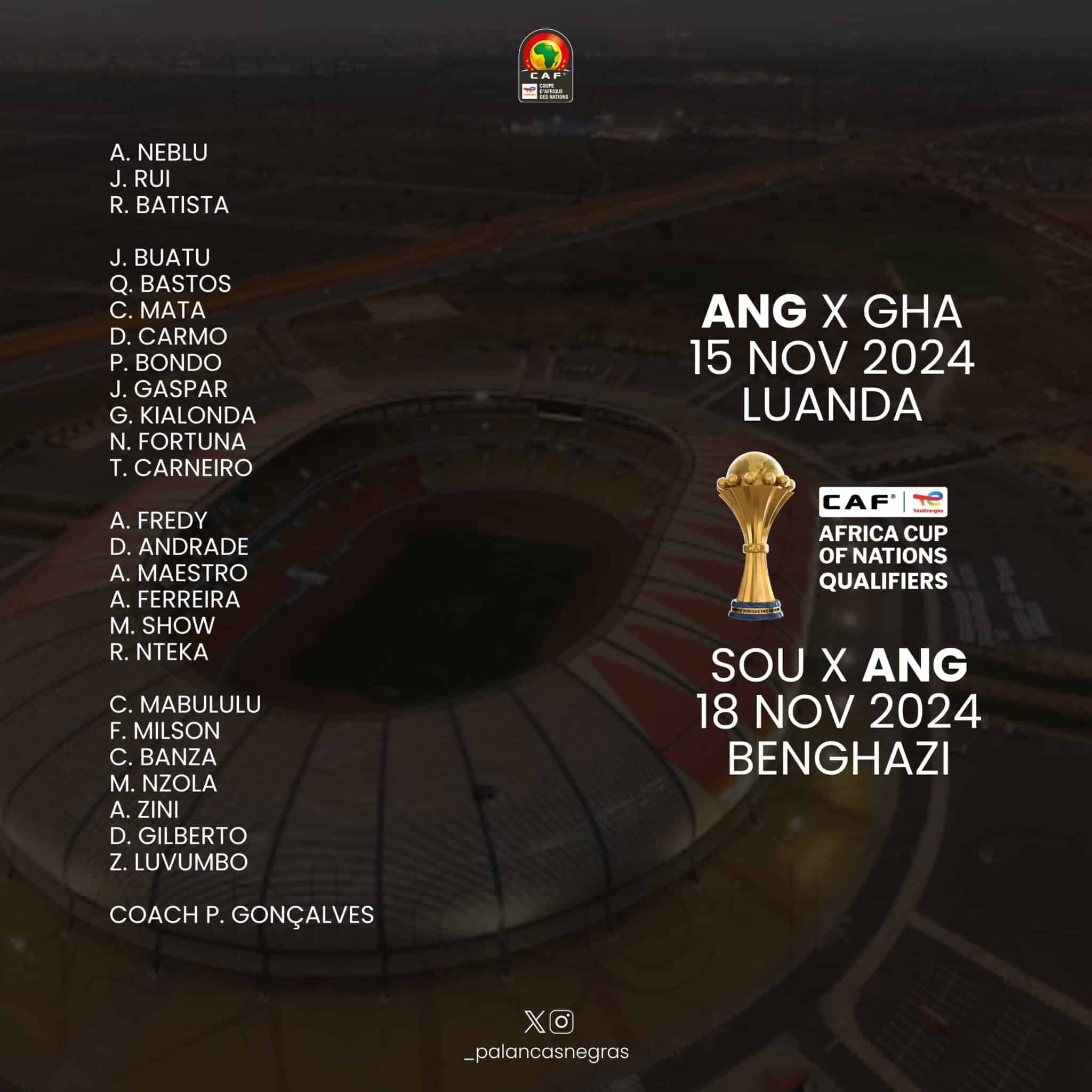 CAN 2025 (Q): la liste de l’Angola pour les deux dernières journées