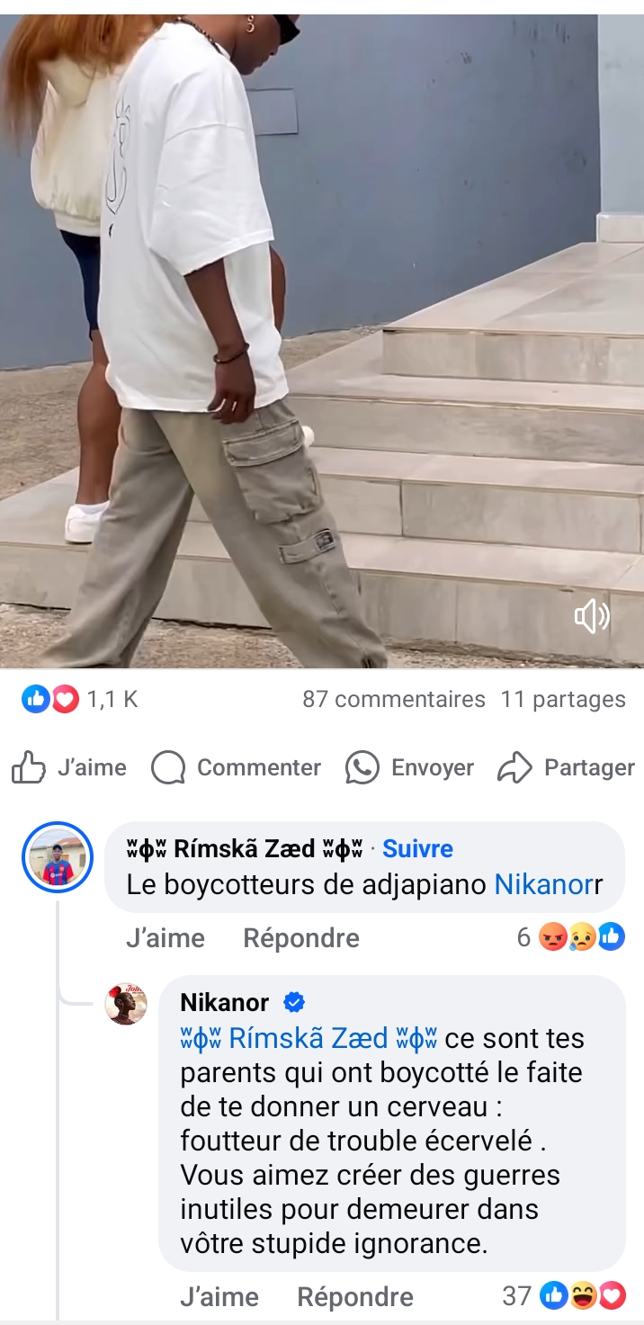 Et pour le recadrer, l’interprète du titre ‘Dans tes yeux’, l’a fait descendre de son piédestal. « Ce sont tes parents qui ont boycotté le fait de te donner un cerveau : fauteur de trouble écervelé. Vous aimez créer des guerres inutiles pour demeurer dans votre stupide ignorance », a-t-il répondu.