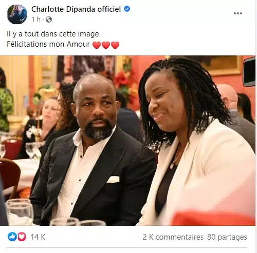 Longtemps taxée de lesbienne Charlotte Dipanda a révélé leur relation sur sa page Facebook en juillet dernier. « Il y a tout dans cette image, Félicitations mon Amour« , avait-t-elle écrit en légende d’un cliché d’elle assise à côté de son prince charmant.