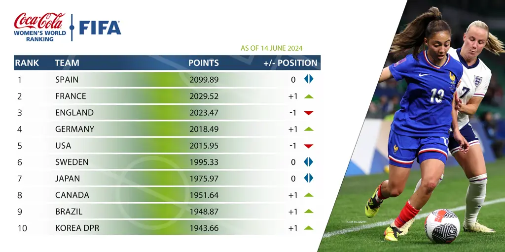 Classement FIFA féminin juin 2024: le top 10 mondial