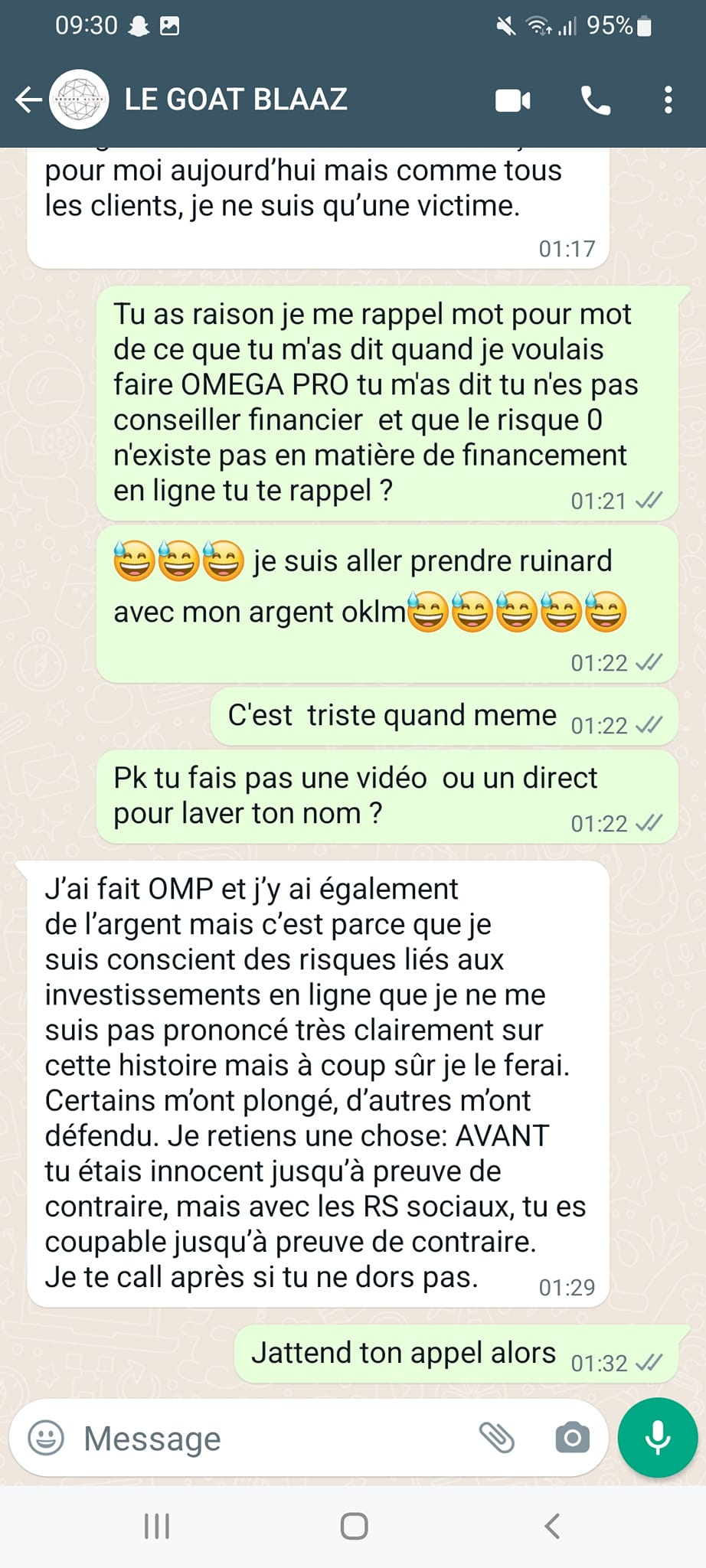 « Comme tous les clients, je ne suis qu’une victime », Blaaz clarifie ses liens avec Oméga Pro