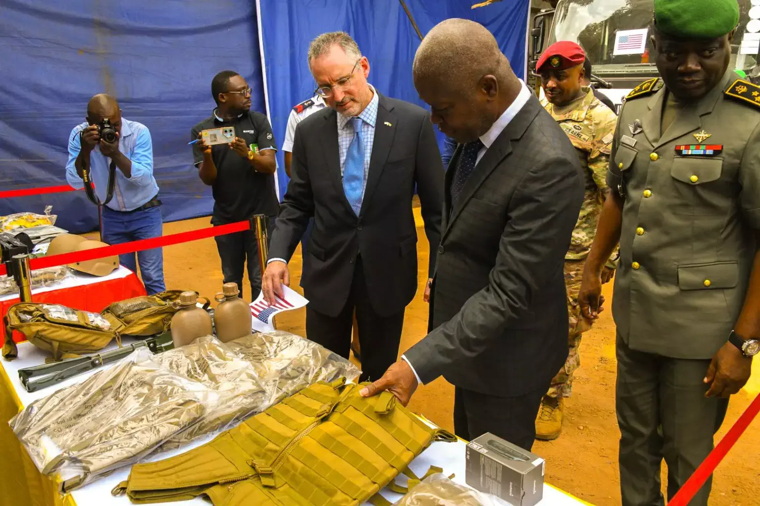 La cérémonie de remise de don a eu lieu ce mardi 30 avril 2024 au Camp GUEZO de Cotonou, en présence de l’Ambassadeur des États-Unis, Brian Shukan, du Ministre de la Défense du Bénin, Fortunet Alain Nouatin, du Chef d’état-major général, le Général de division Fructueux Gbaguidi, et des Chefs d’état-major des différentes composantes des Forces armées.