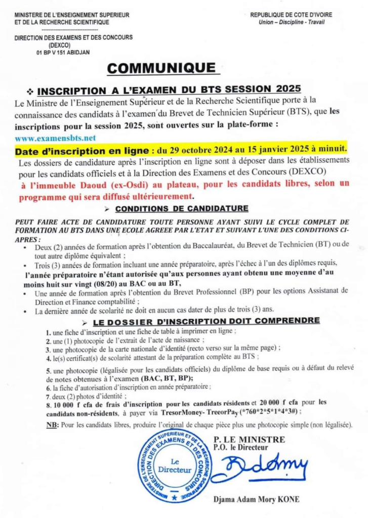 Côte d’Ivoire – BTS 2025 : ce qu’il faut savoir sur le processus d’inscription