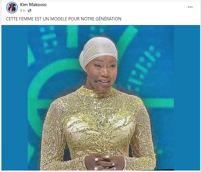 Sa prestation n’a laissé personne indifférente. Même Kim Makosso, fille du général Camille Makosso, est montée au créneau pour décrire Konnie Touré comme exemple à suivre. « Cette femme est un modèle pour notre génération« , a écrit Kim Makosso,19, ans en légende d’un cliché de Konnie Touré.
