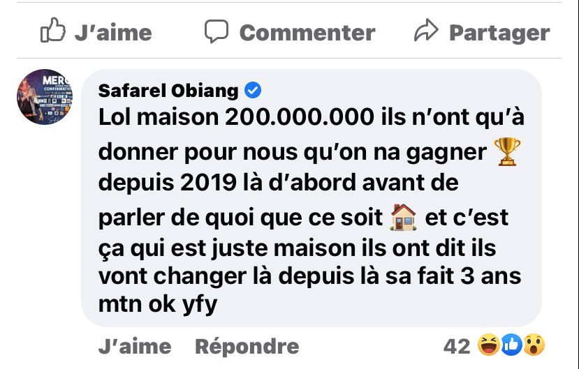 En effet, l’artiste coupé-décalé a déclaré qu’il n’a pas reçu jusqu’à la date d’aujourd’hui, la villa évaluée à 40 millions de Francs CFA qui lui a été promise après son exploit depuis l’édition 2019. « Lol maison 200.000.000 ils n’ont qu’à donner pour nous qu’on a gagné depuis 2019 là d’abord avant de parler de quoi que ce soit. Et c’est ça qui est juste. La maison, ils ont dit, ils vont changer là depuis là ça fait trois ans maintenant » a déploré l’artiste.
