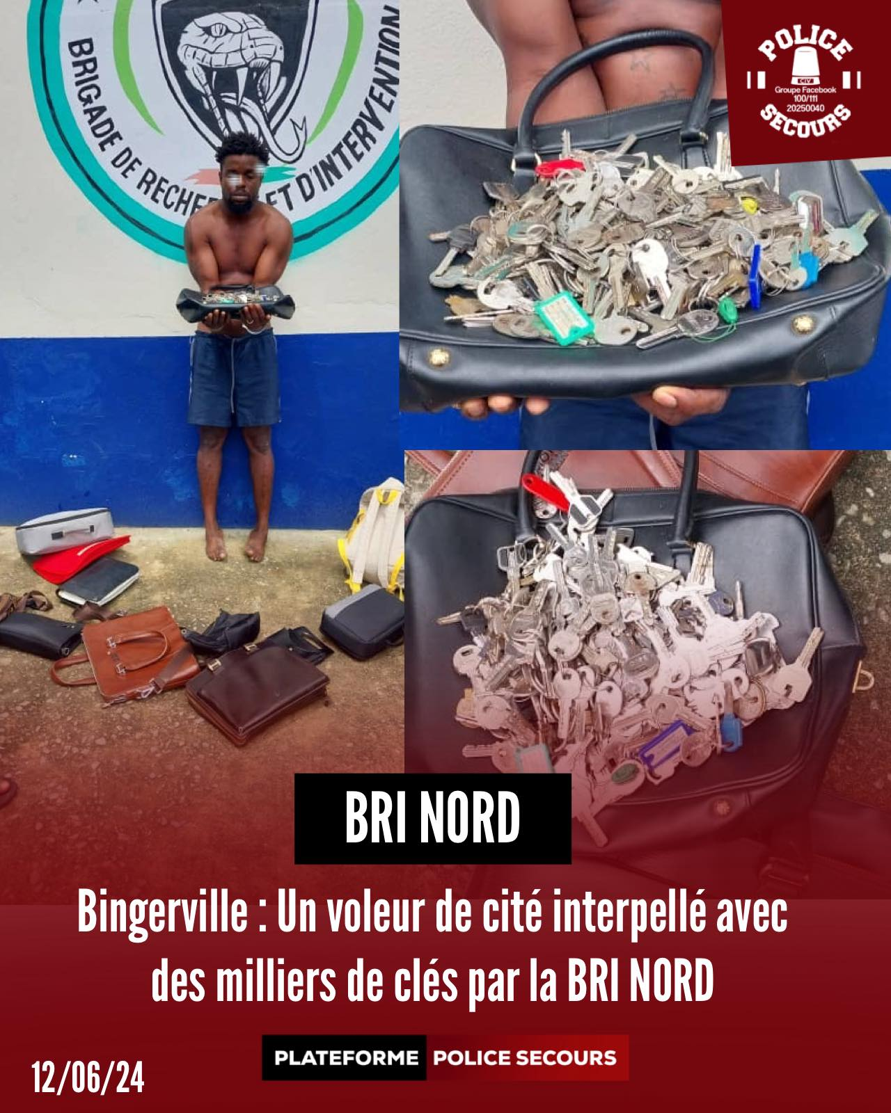 Un voleur a été interpellé à Bingerville, ville située dans le district d’Abidjan, à environ 10 km à l’est de la capitale économique du pays. La police a retrouvé plusieurs sacs contenant des milliers de clés lors de l’interpellation.