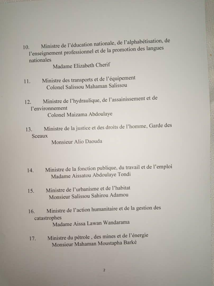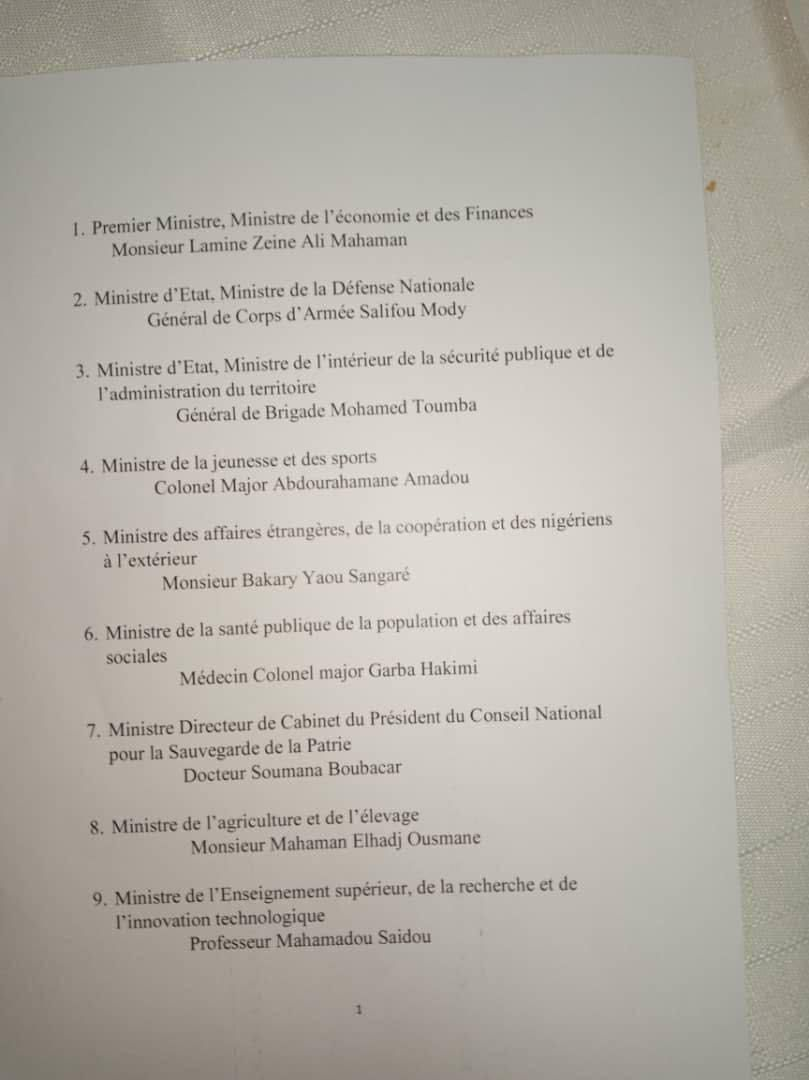 Ce jeudi 10 août 2023, le Premier ministre Lamine Zeine Ali Mahamane, nommé par la junte militaire du Niger, a formé le nouveau gouvernement avec 21 membres, dont deux (2) ministres d’État et un ministre délégué.