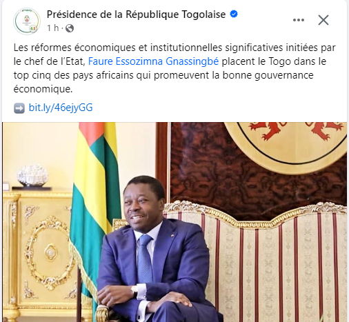 La présidence a réagi par rapport à cette performance sur sa page Facebook, mettant en avant l’impact des réformes économiques et institutionnelles sur la gouvernance économique du pays. « Les réformes économiques et institutionnelles significatives initiées par le chef de l’Etat, Faure Essozimna Gnassingbé placent le Togo dans le top cinq des pays africains qui promeuvent la bonne gouvernance économique« , peut-on lire dans la publication.
