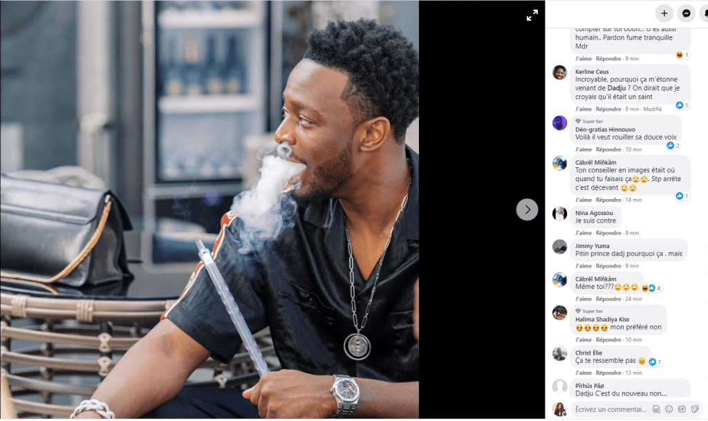 Ce n’est pas la première fois que Dadju s’affiche en train de fumer de la Chicha. Il s’était même attiré la colère de ses fans qui l’ont mis en garde contre la cigarette et ses dérivés en 2020. Pour les internautes, Dadju risque de rouiller sa douce voix s’il continue à fumer.