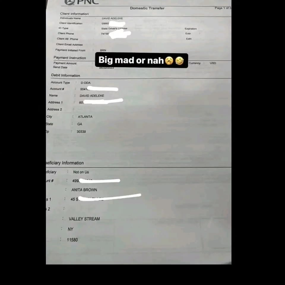 Une affaire sensationnelle secoue actuellement les réseaux sociaux, impliquant une femme américaine du nom d’Anita Brown, qui s’est subitement manifestée pour révéler des informations troublantes sur le célèbre chanteur Davido. Sous le pseudonyme « Ninatheelite » sur Instagram, cette femme a déclaré être engagée dans une relation avec Davido et affirme désormais attendre un enfant de lui. Les révélations fracassantes d’Anita Brown ont rapidement captivé l’attention de nombreux internautes, alimentant une vague de discussions et de spéculations.