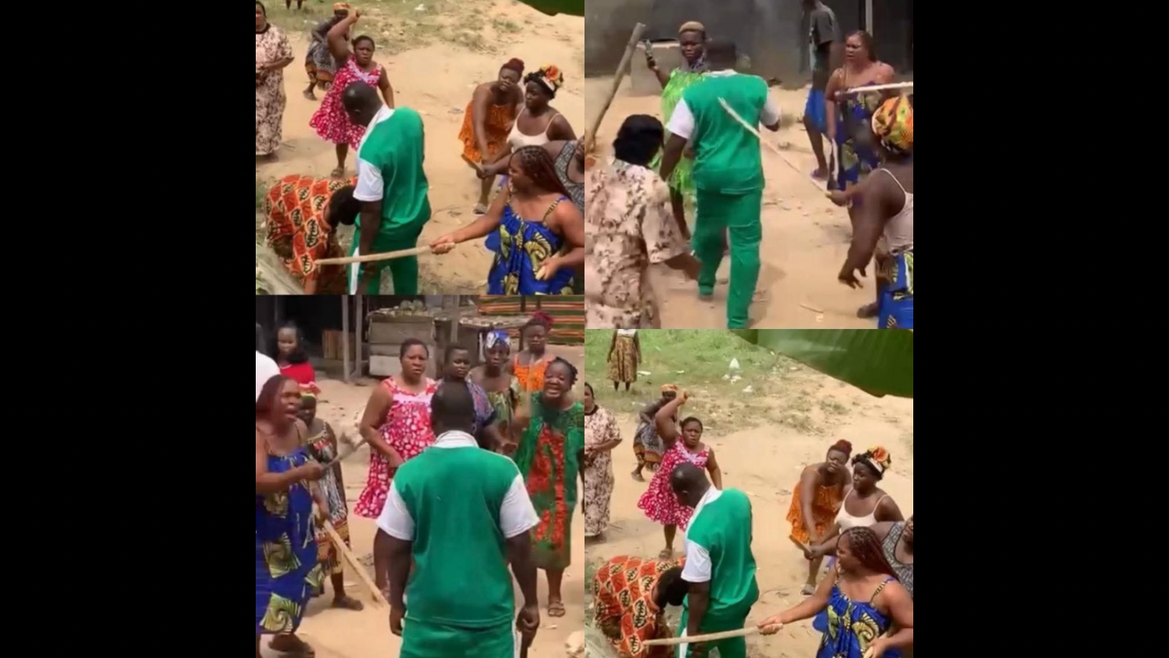 Des femmes frappent un mari accusé de battre son épouse (Vidéo)