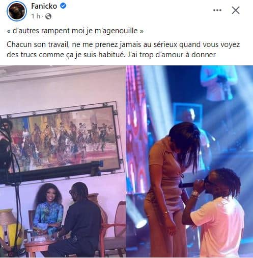 Fanicko est-il sur le point de se caser ? C’est la question que se posent les internautes curieux depuis l’apparition de quelques indices sur la toile. En effet, la polémique a été lancée en premier lieu par l’artiste et rappeur Tyaf très proche de Fanicko. Dans un post sur sa page Facebook dans la journée de ce jeudi, l’on y voit une image sur laquelle Fanicko s’affichait à genou devant une jeune femme de teint clair. La technique de l’Atalaku romantique taillée sur mesure, et même brésilienne n’a pas pu résister », a-t-il écrit en légende de cette image.