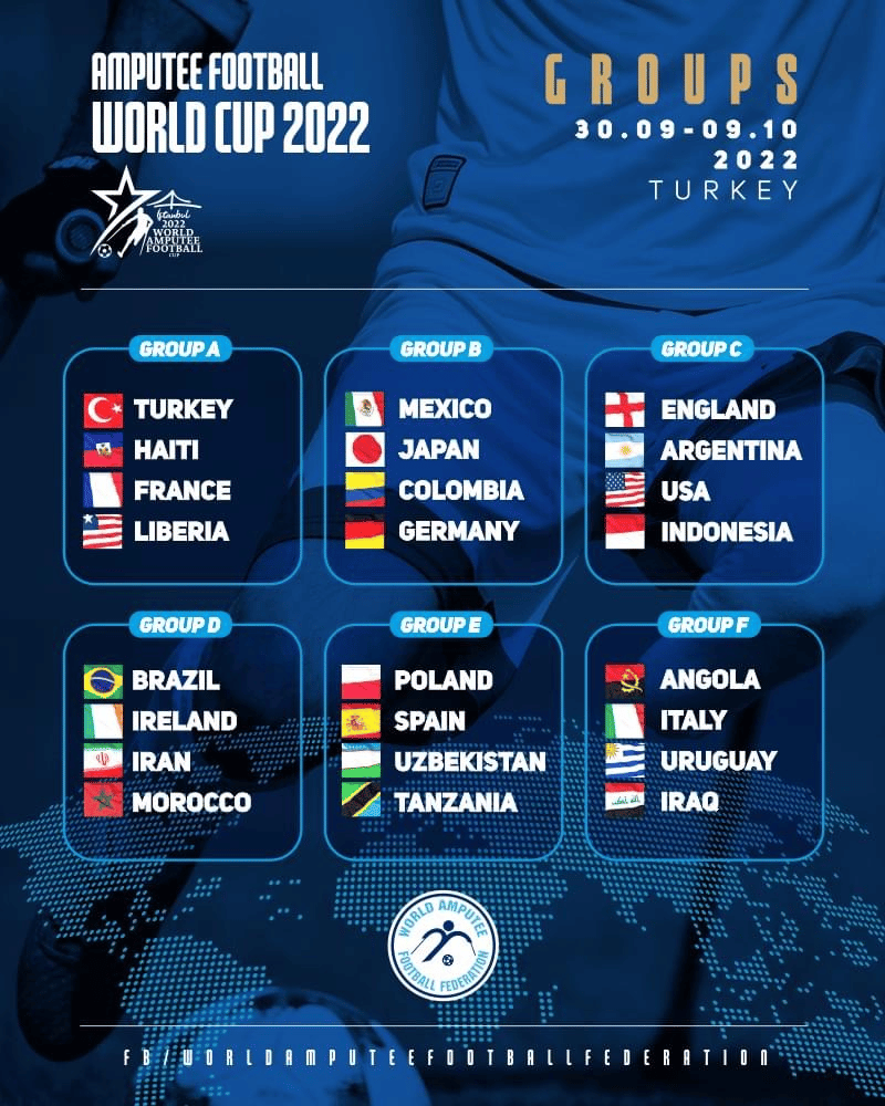 A noter que 24 équipes issues de tous les continents prennent part à ce Mondial pour Amputés. Tenant du titre, l’Angola a hérité de la poule de la mort. Les vainqueurs de la précédente édition sont logés dans le groupe F aux côtés de l’Italie, de l’Uruguay et de l’Irak.