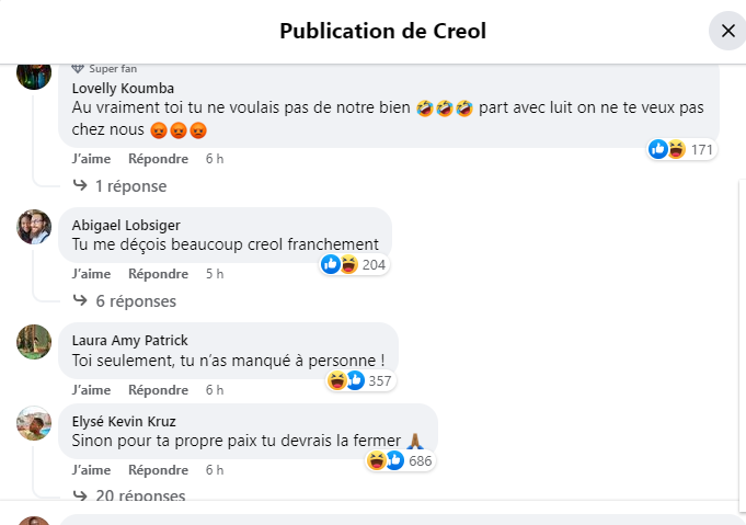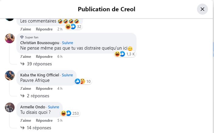 Faut-il le rappeler, Créol fait partie des célébrités gabonaises qui avaient ouvertement soutenu Ali Bongo, lors des campagnes électorales : « Moi mon candidat c’est Ali Bongo. Je pense que le PDG va gagner, chacun a le droit de choisir son candidat. Quand on va annoncer que Ali Bongo a gagné, vous allez sortir après de vos trous », avait-elle déclaré dans un direct sur sa page Facebook.