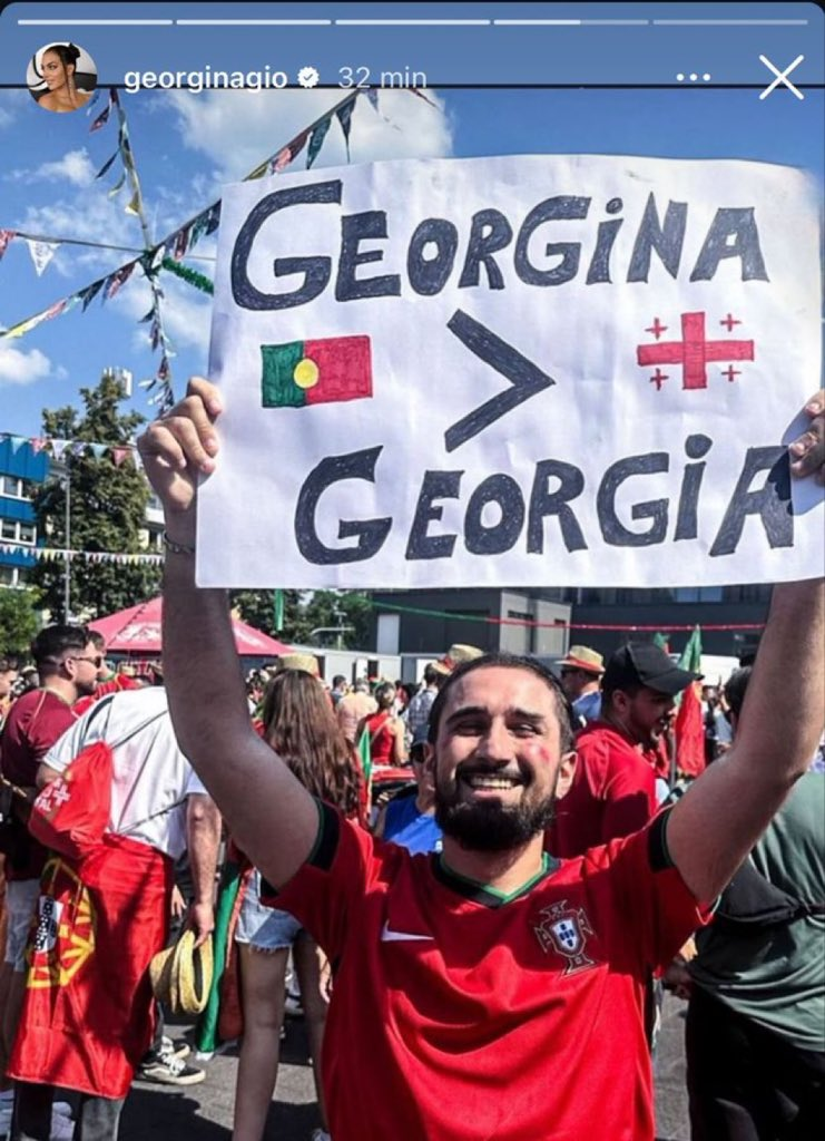 « Georgina > Georgia », était écrit sur l’une des affiches. Un message partagé par le mannequin espagnol dans une story sur son compte Instagram. Sauf que le Portugal et Cristiano Ronaldo ne remporteront pas le match au coup de sifflet final.