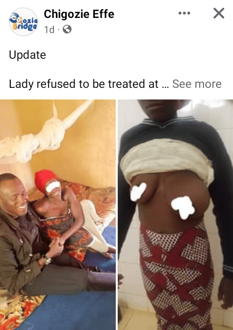 Dans un post sur sa page Facebook, Chigozie Effe, a révélé qu’il avait voyagé de Minna à Kafanchan à Kaduna pour tenter d’amener la femme en question à l’hôpital de Jos, dans l’État du Plateau, pour un test de pathologie. Mais contre toute attente, elle a refusé catégoriquement en évoquant sa tradition.