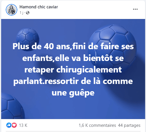 Hamond Chic est plus que jamais prête à faire sa prochaine chirurgie. Elle l’a annoncé à haute et intelligible voix il y a environ 24 heures sur sa page Facebook. « Plus de 40 ans, fini de faire ses enfants, elle va bientôt se retaper chirurgicalement parlant. Ressortir de là comme une guêpe » a écrit la coach comme pour dévoiler sa volonté de tout faire pour conserver son corps de rêve.