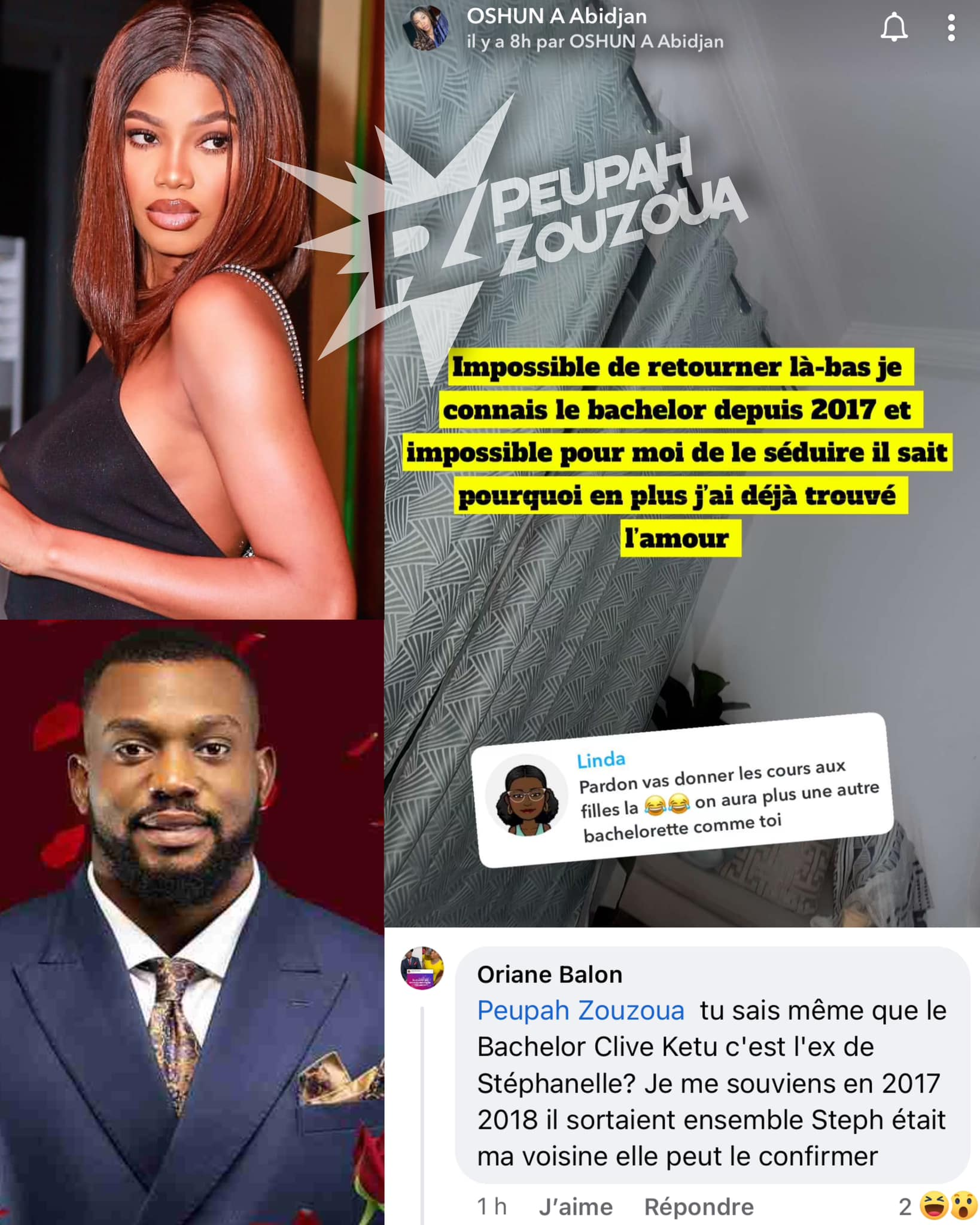 Dans une déclaration énigmatique qui lui est attribuée, Stéphanelle a semé le doute quant à sa relation avec Clive Ketu. « Impossible de retourner là-bas, je connais le bachelor depuis 2017 et impossible pour moi de le séduire. Il sait pourquoi d’ailleurs, j’ai trouvé l’amour… », aurait-elle répondu sur Facebook. Cette réponse ambiguë a semé la confusion et laissé les internautes dans l’incertitude.