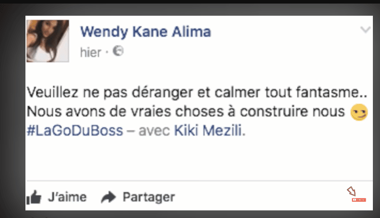 « Je connais Wendy. Je ne sais pas pourquoi elle dit qu’elle ne me connaît pas. Mais bon, ça n’engage qu’elle. Et pourtant, j’ai supprimé la photo parce qu’elle me l’a demandée. J’ai posté sa photo avec son consentement, mais elle ne s’attendait pas à ce que cela fasse un grand buzz. Son homme s’est plaint suite à ce poste et sa famille lui a posé des questions à ce sujet», avait expliqué Arafat Dj.
