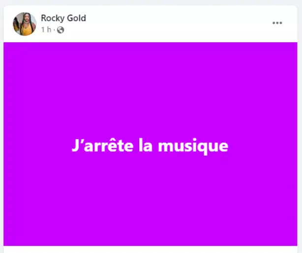 La chanteuse Rocky Gold a annoncé la fin de sa carrière musicale dans une publication sur sa page facebook dans la matinée de ce mardi 2 avril 2024