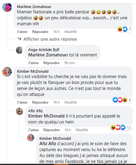 « Au delà des blagues, je n’ai jamais attaqué mes amis Facebook. Je ne fais jamais ça, je respecte l’opinion de chacun », a-t-elle clarifié avant de préciser que son détracteur n’est pas à son premier forfait.