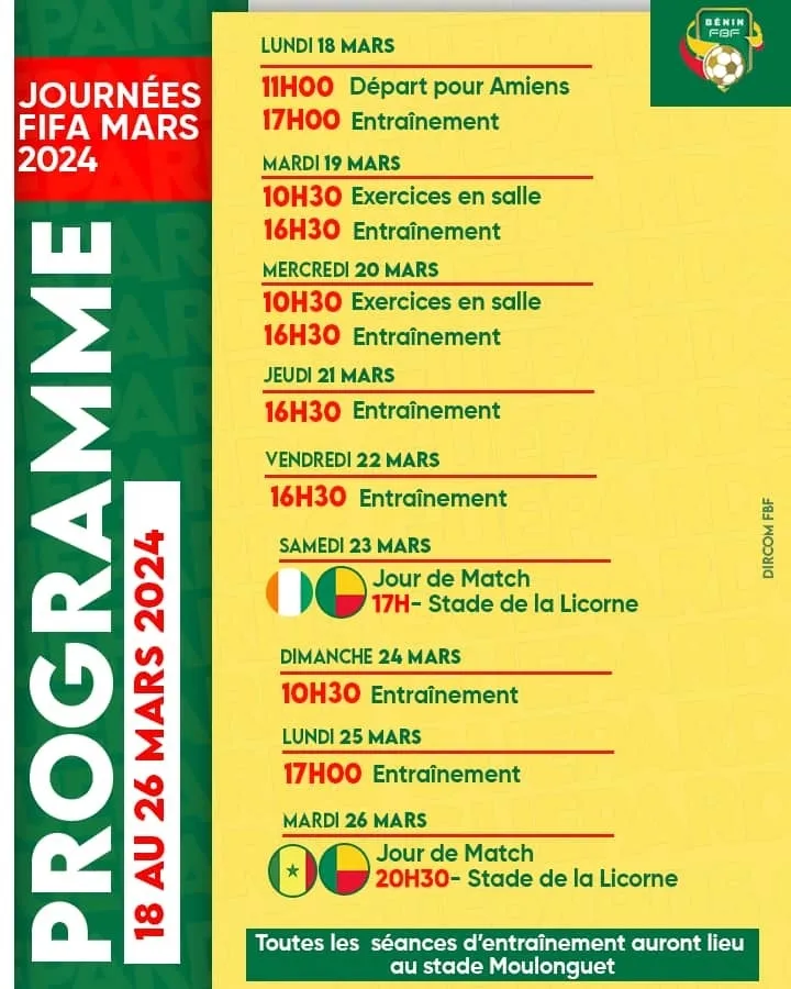 Les Guépards affronteront la Côte d’Ivoire et le Sénégal dans le cadre de la première trêve internationale de l’année civile 2024. La Team Bénin défiera les champions d’Afrique en titre le 23 mars à 17 heures (GMT+1) au stade de la Licorne à Amiens en France.