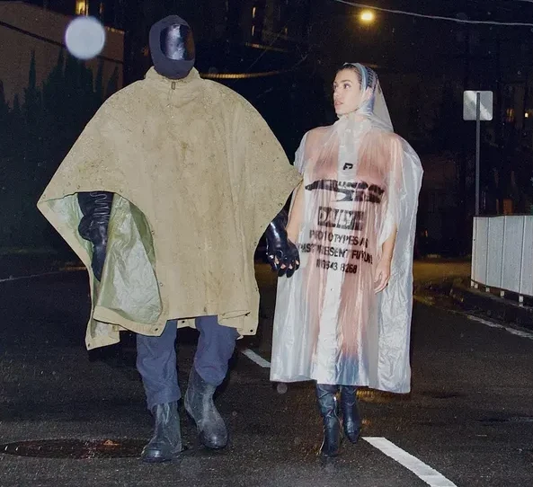 Dans une vidéo publiée par Kanye West, on peut voir Bianca Censori vêtue d’une combinaison transparente, entourée de figures qui semblent être ses clones. Il s’agit d’un poncho de pluie transparent pour se protéger de l’humidité alors qu’ils se dirigent vers un studio de musique. Bien que le poncho parvienne à couvrir ses seins, Bianca était obligée de positionner habilement sa main sur sa partie intime à chaque pas.