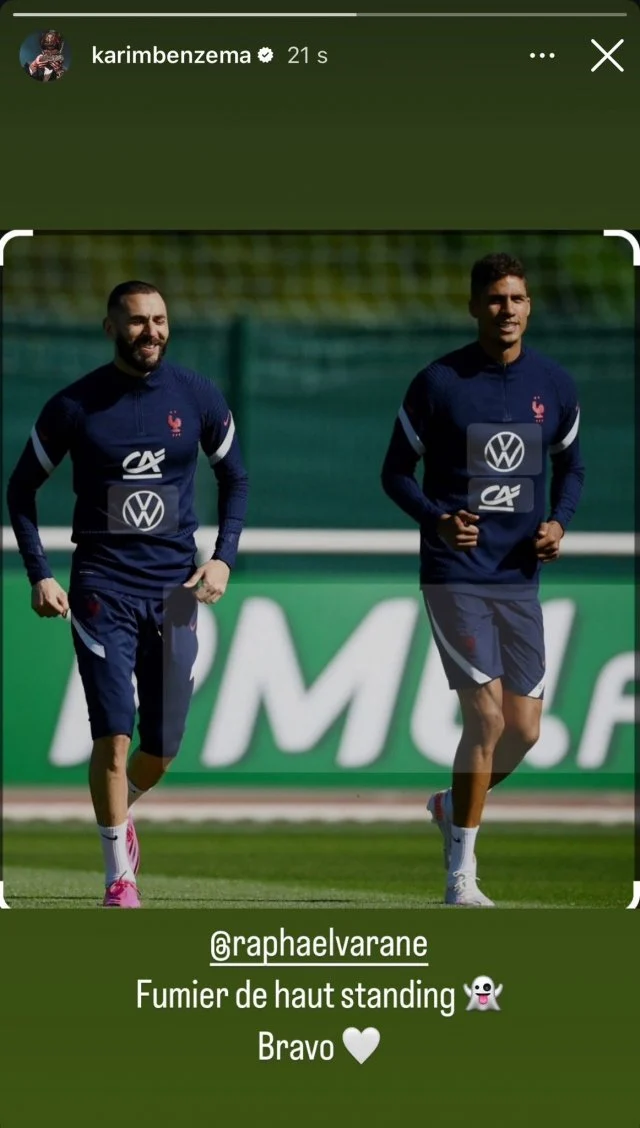 Compatriote de Varane et ancien coéquipier du Français à la Casa Blanca, Karim Benzema a aussi réagi à la retraite sportive de l’ex-mancunien. «Fumier de haut standing, bravo», a écrit l’attaquant d’Al Ittihad en story Instagram.