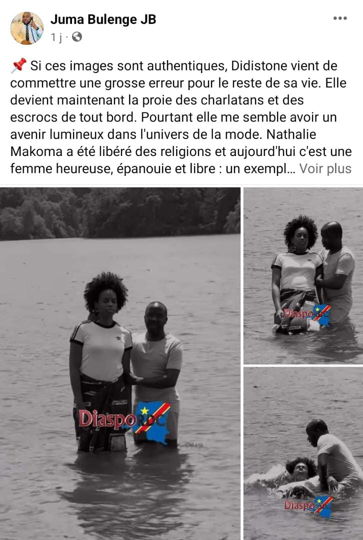 « Si ces images sont authentiques, Didistone vient de commettre une grosse erreur pour le reste de sa vie. Elle devient maintenant la proie des charlatans et des escrocs de tout bord. Pourtant, elle me semble avoir un avenir lumineux dans l’univers de la mode. Nathalie Makoma a été libérée des religions et aujourd’hui elle est une femme heureuse, épanouie et libre : un exemple pour la jeunesse congolaise et africaine », avait-il écrit.