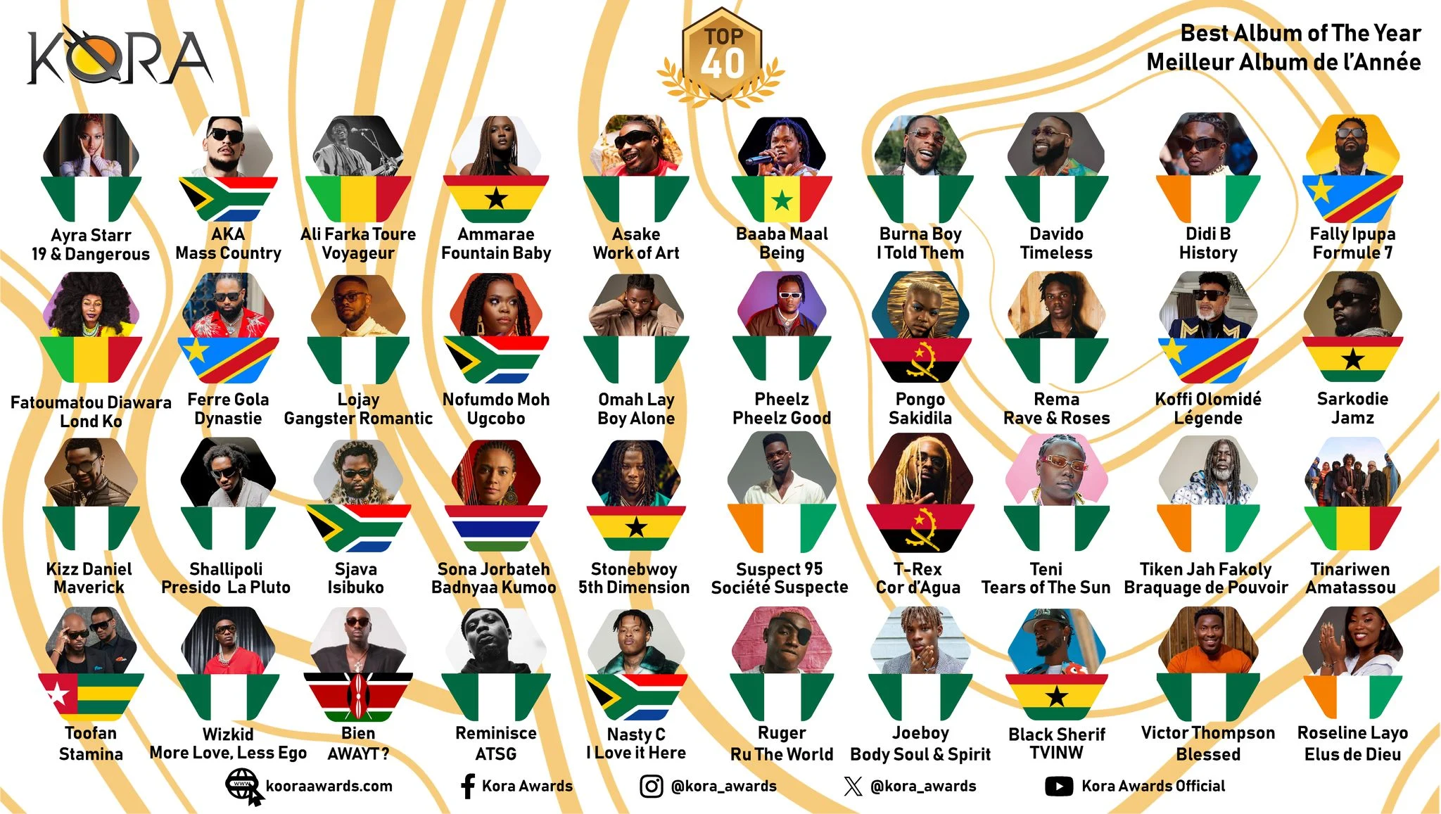 Dans chacune de ses 17 catégories, il y a 40 artistes nominés. Cependant, ces artistes feront l’objet d’un vote de la part des internautes. Les votes resteront ouverts jusqu’au 29 février 2024, date à laquelle les 20 finalistes qui poursuivront l’aventure et seront présents à la prestigieuse cérémonie seront annoncés.