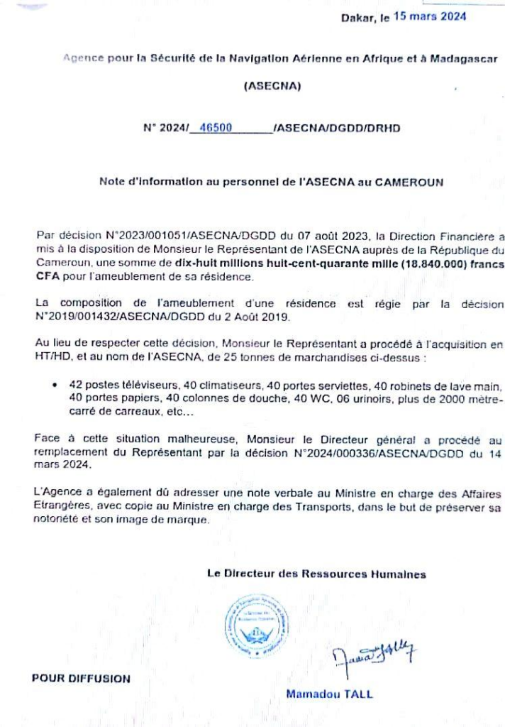 Le représentant résident de l’Agence pour la sécurité de la navigation aérienne en Afrique et à Madagascar (Asecna) au Cameroun, Erick Ngoune Sonna, a été destitué par la direction principale de l’agence pour malversation financière.