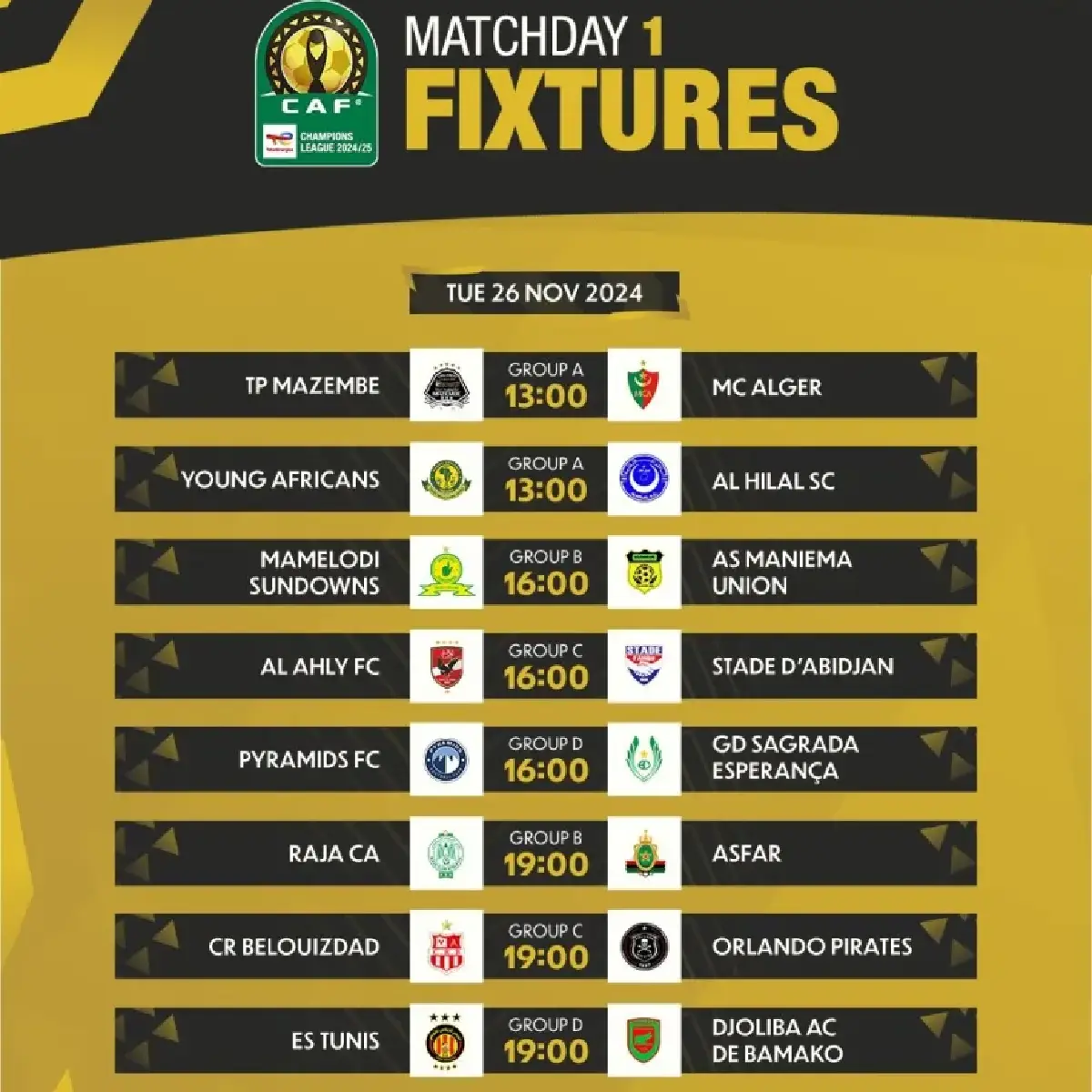 Les prochaines semaines s’annoncent passionnantes. Les supporters africains et du monde entier sont invités à suivre de près cette édition 2024-2025 de la Ligue des Champions CAF TotalEnergies. Suspense, émotions et exploits sportifs seront au rendez-vous.