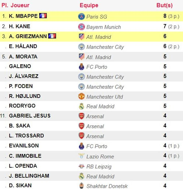 LDC: Mbappé, Kane, Haaland, le classement actualisé des buteurs