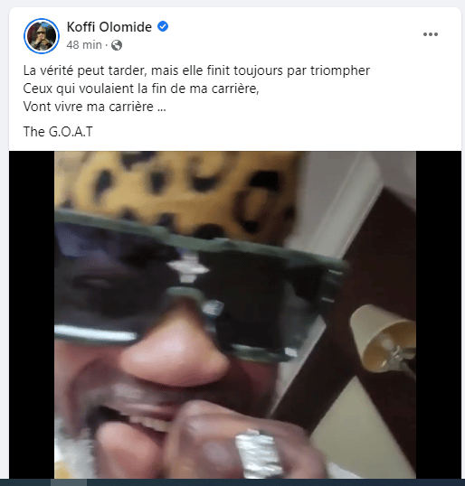 « Je me sens beaucoup plus libre que je n’étais libre. Je suis un homme libre », a-t-il précisé. Dans sa vidéo, Koffi Olomidé, star de la rumba congolaise a lancé une petite pique à ses détracteurs. « Les menteurs, non, vous ne passerez pas, les mécréants, non, vous ne passerez pas, les menteuses, on va régler votre compte. Ceux là qui voulaient la fin de ma carrière, vont vivre ma carrière. Je vais chanter avec Dieu en moi », a-t-il lancé.