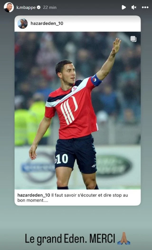 Sur son compte Instagram, le buteur français a tenu à rendre un hommage vibrant à Eden Hazard, surnommé affectueusement « le grand Eden ». Le natif de Bondy a écrit un simple mais significatif « Merci ».