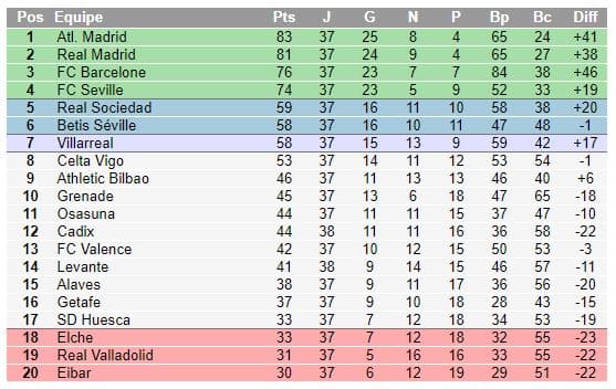 Le classement actuel de la Liga: