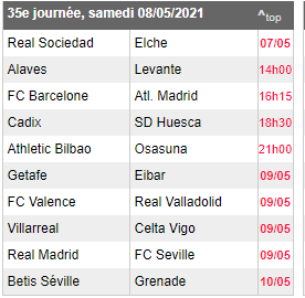 Le calendrier complet de la 35e journée de Liga: