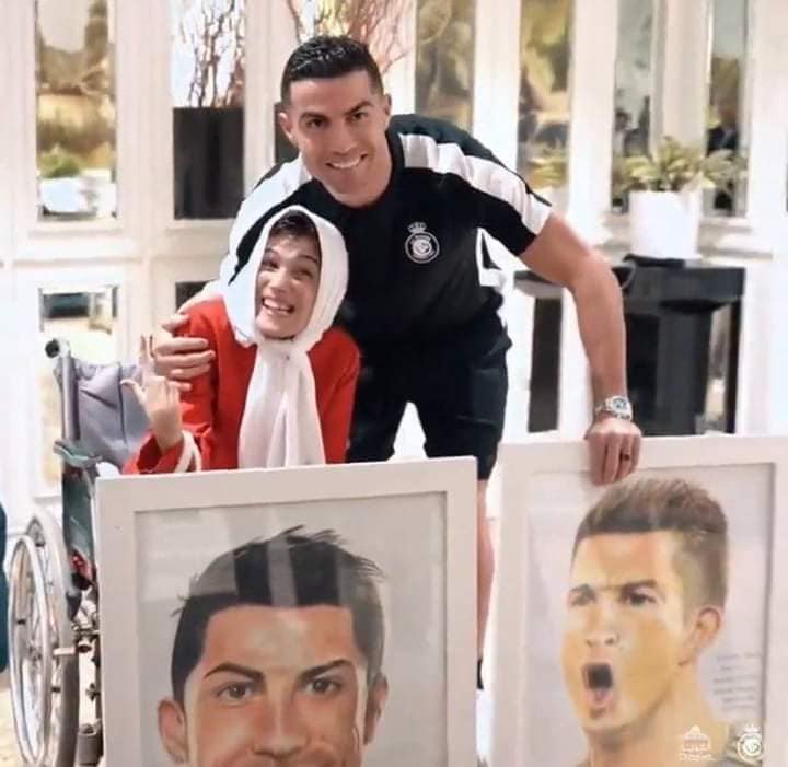 Lors de cette rencontre, la jeune femme lui a offert deux de ses œuvres, geste auquel Ronaldo a répondu par un câlin et un baiser sur la joue en signe d’affection et de gratitude.