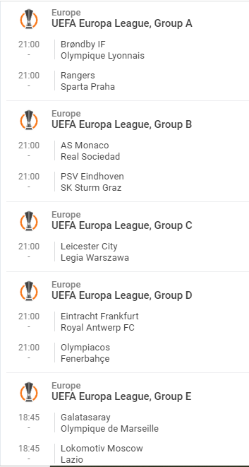 Dans le groupe B, Monaco reçoit la Real Sociedad. Avant le coup d’envoi les monégasques son premier du groupe avec deux points d’avance sur leur adversaire du soir. Une victoire leur ouvrirait automatiquement les portes des 16e de finale. Dans les autres rencontres du jour, Leicester qui reçoit le legia Varsovie doit gagner pour continuer son aventure européenne, tandis que l’OM se déplace à Marseille.