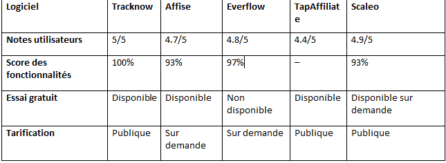 Si vous recherchez une solution flexible et personnalisable à un prix abordable, Tracknow est un excellent choix. De plus, des plateformes comme Affise, Everflow, TapAffiliate et Scaleo proposent des solutions robustes adaptées aux différentes tailles d’entreprise et à leurs objectifs.