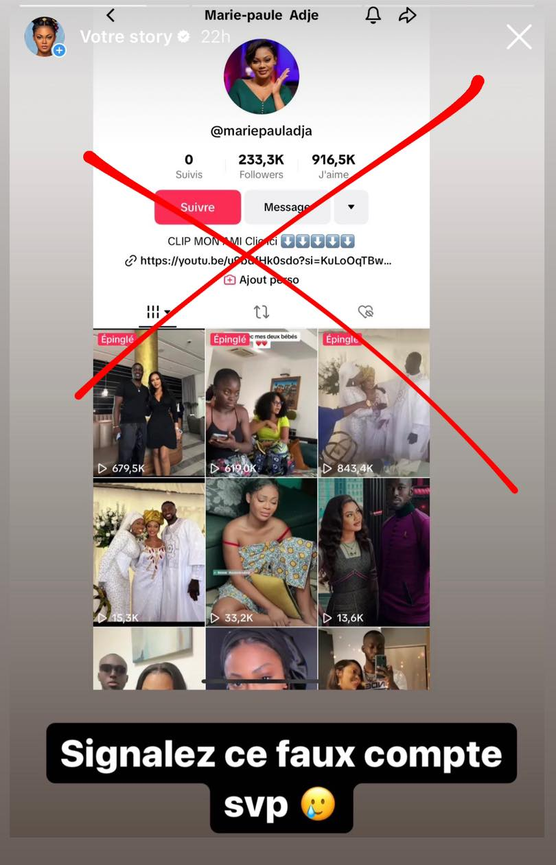 La chroniqueuse et actrice ivoirienne Marie Paul Adjé est actuellement très en colère. En effet, cette dernière, qui est actuellement en déplacement sur la terre asiatique, est la cible des cybercriminels. Des personnes de mauvaise foi ont créés un faux compte Tik Tok en son nom. Ses usurpateurs utilisent donc ce faux compte pour soutirer de l’argent à ses proches.