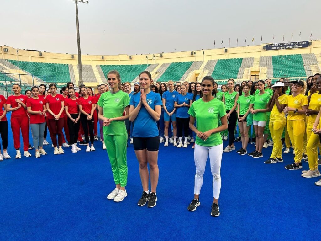 Le Stade National de New Dehli en Inde a abrité le samedi 24 février 2024, l’épreuve de Miss Monde Sport Challenge. Au cours de cette épreuve, les participantes de Miss Monde ont rencontré des joueuses de Cricket, de football et de hockey. Elles ont joué pour l’or et pour une place dans le top 40 de la compétition. Les candidates des 4 continents sont représentées par les couleurs de leurs tenues.