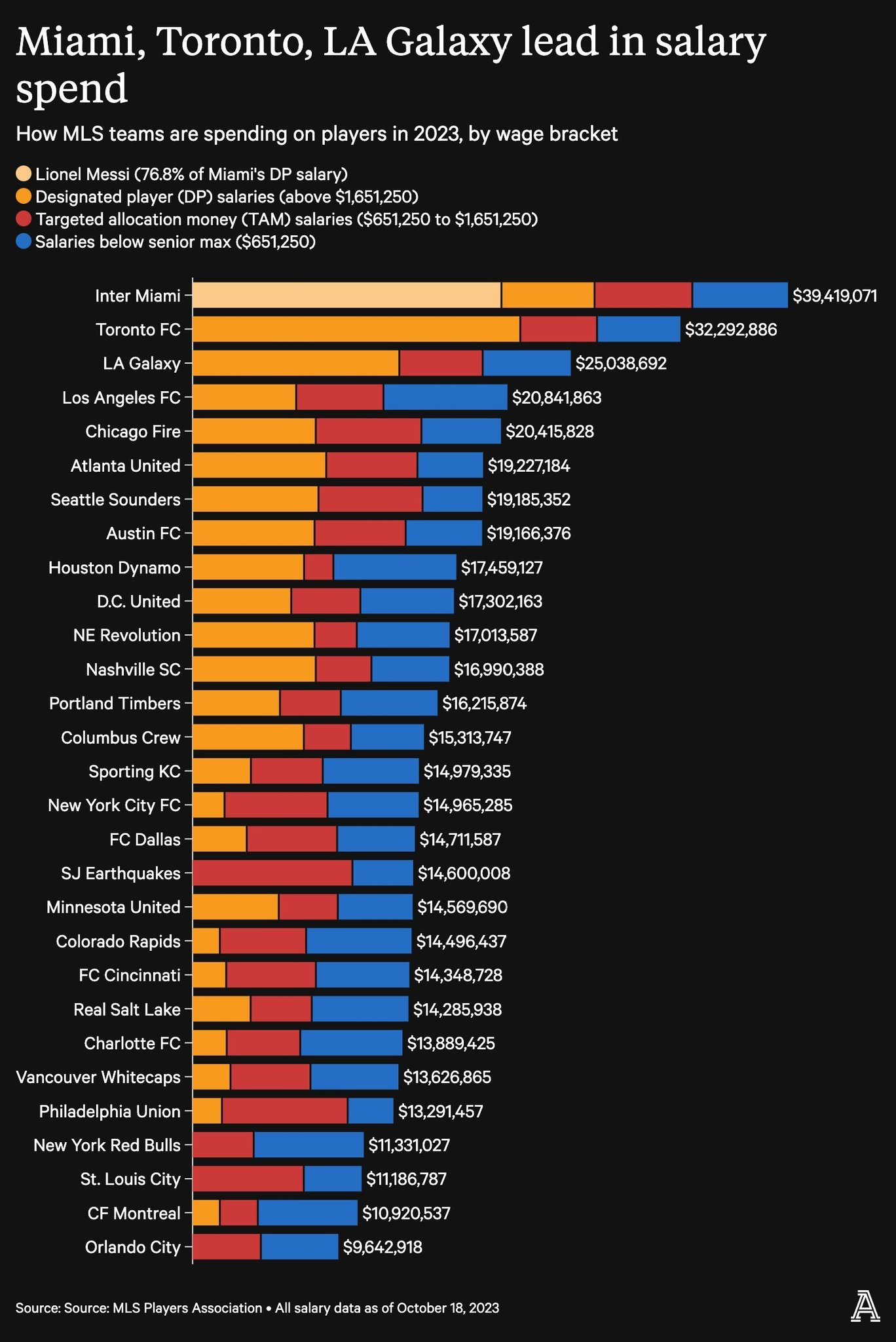 La MLS a dévoilé le salaire de chaque joueur des équipes du championnat nord-américain. Et sans surprise, Lionel Messi est seul en tête du classement.